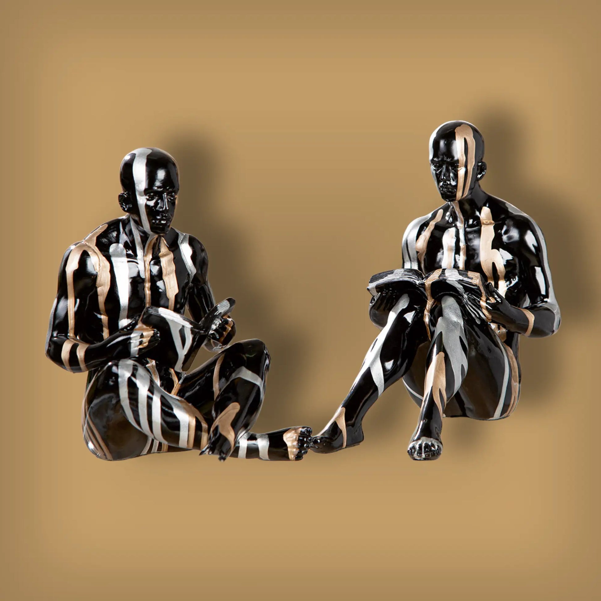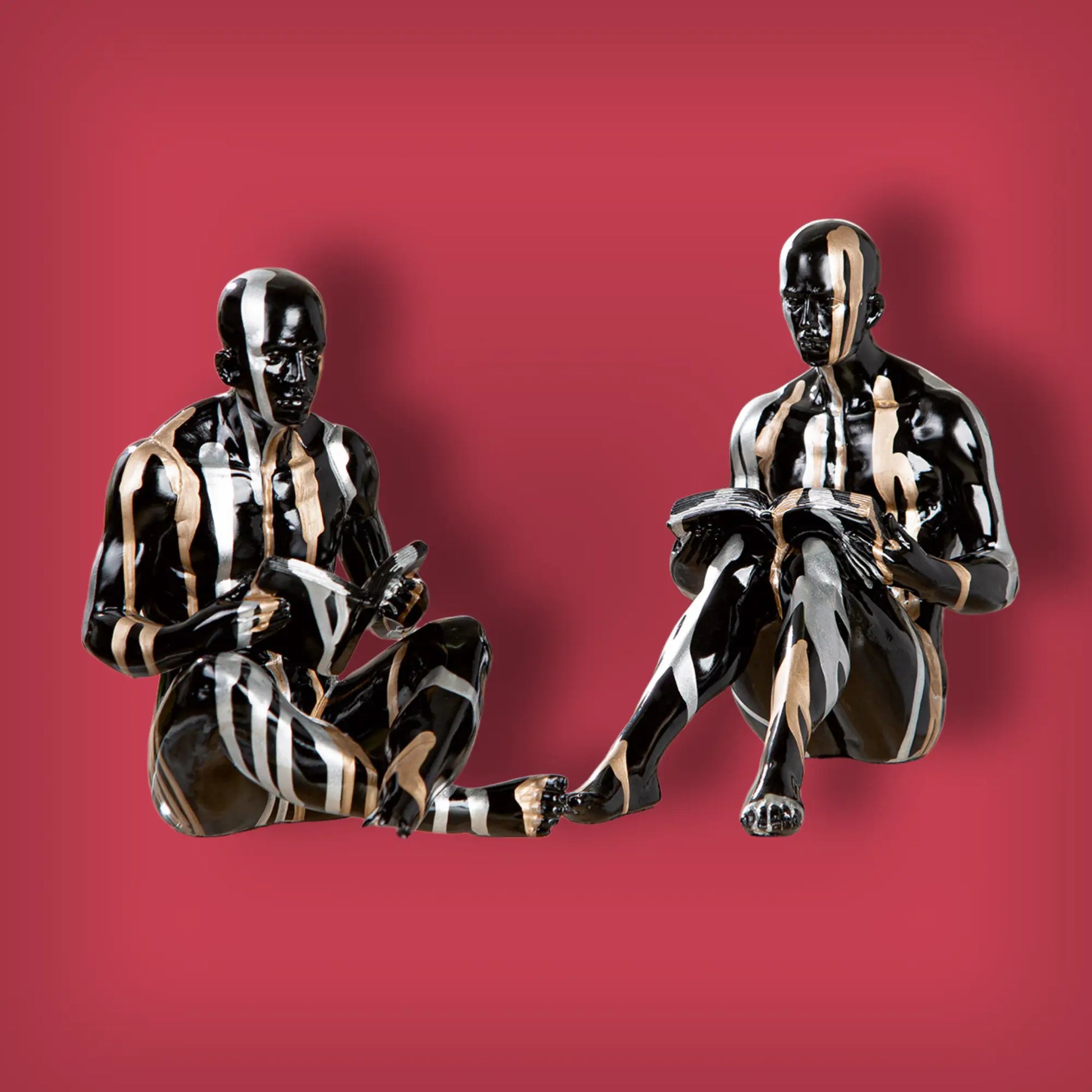 Set aus zwei Buchstützen aus schwarzem Kunstharz mit Linienmuster, 2fach sortiert. Ideal zum stabilen Halten von Büchern und als dekoratives Element im Regal. Maße: L 14 cm, B 23 cm, H 22,5 cm.