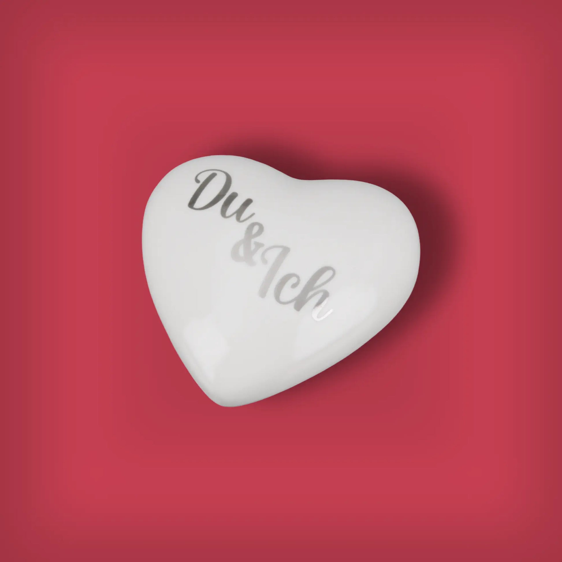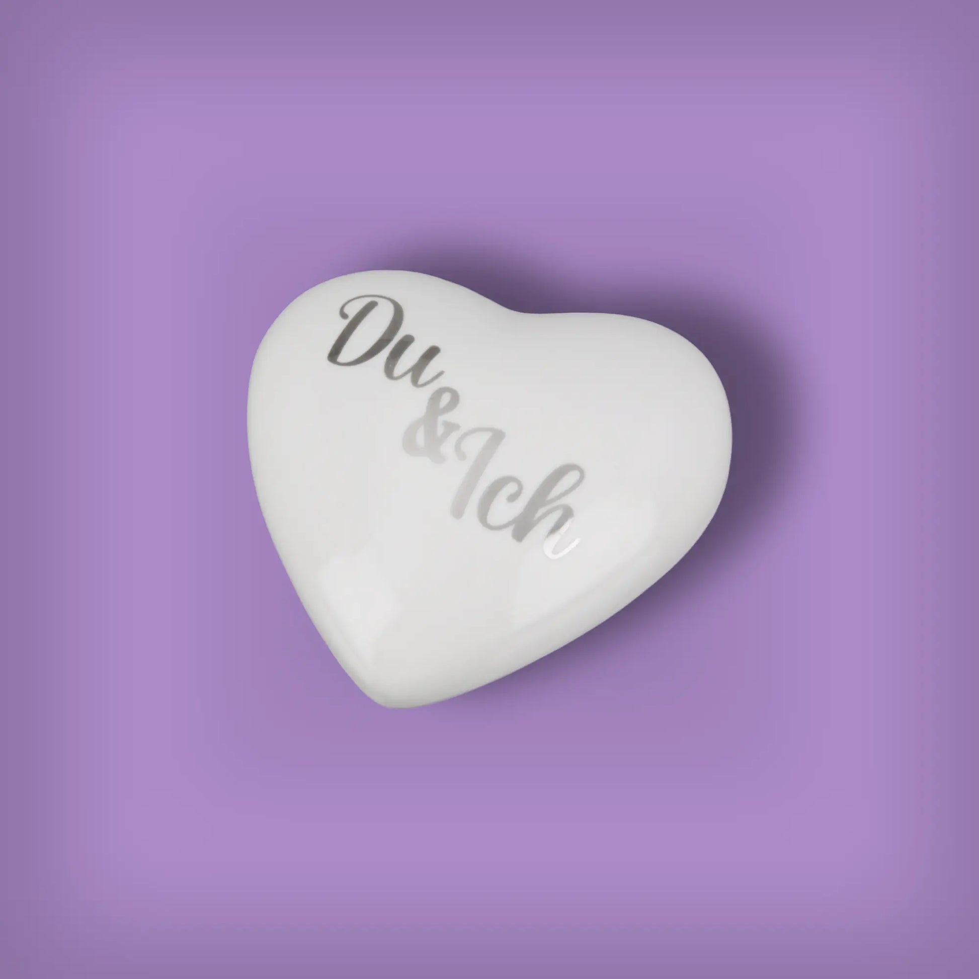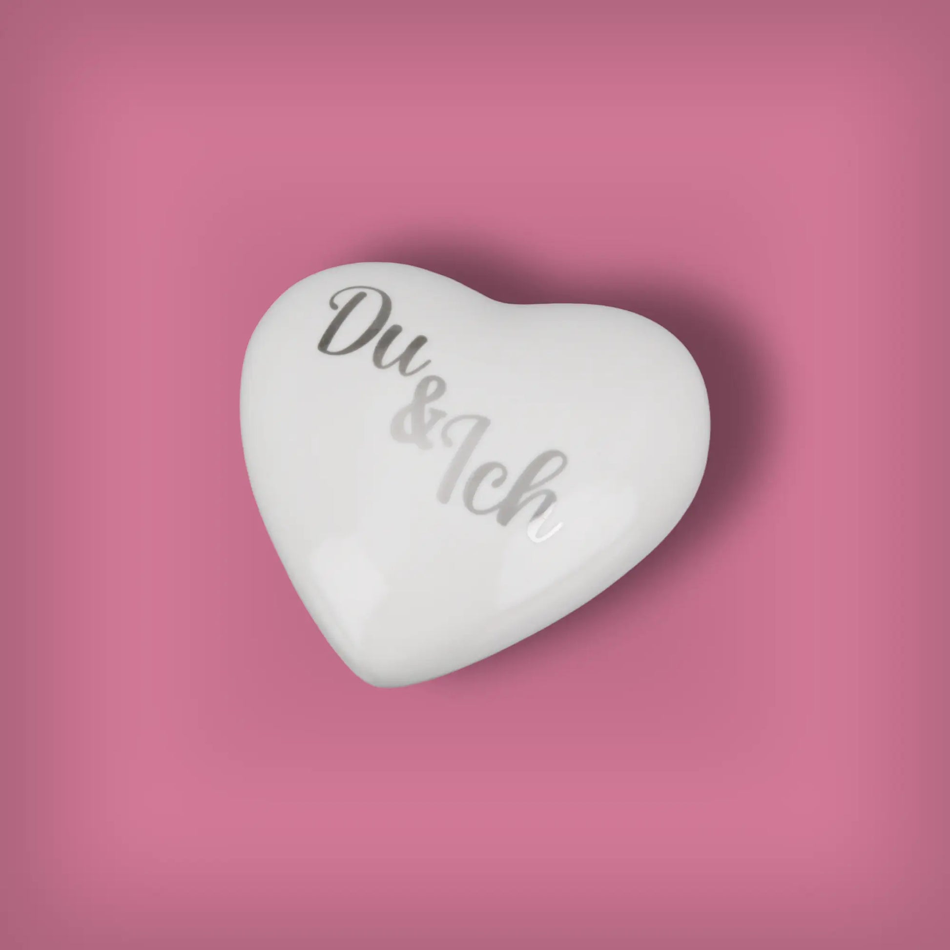 Das elegante Dekoobjekt Du & Ich aus weißem Porzellan symbolisiert Verbundenheit und Liebe. Mit seinen Maßen von 8 x 8 x 7 cm ist es eine stilvolle Ergänzung für jedes Zuhause.