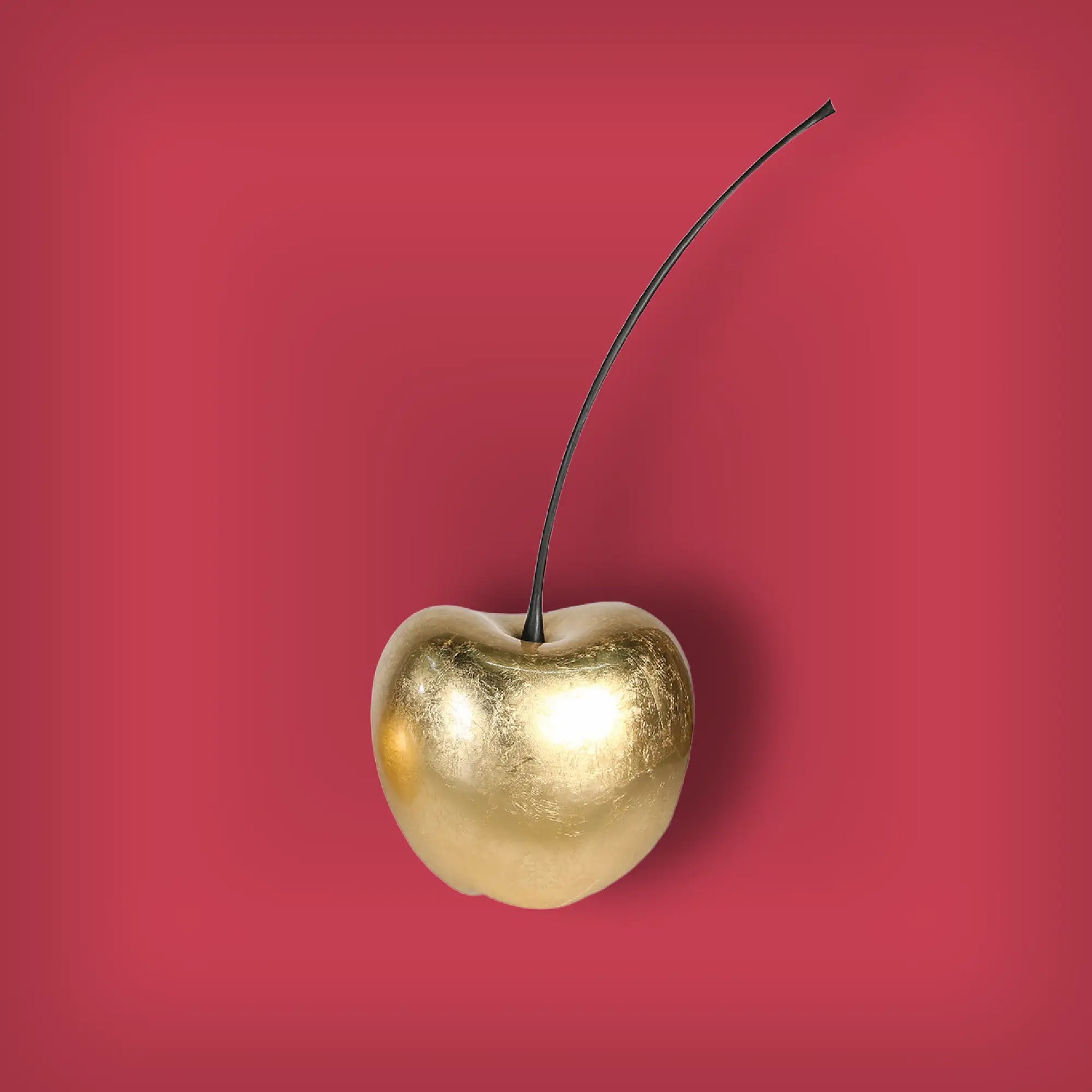 Stilvolles Deko-Objekt in Kirschenform aus goldfarbener Keramik. Mit einer beeindruckenden Höhe von 88 cm und einer Breite von 32 cm setzt es elegante Akzente in jedem Raum.