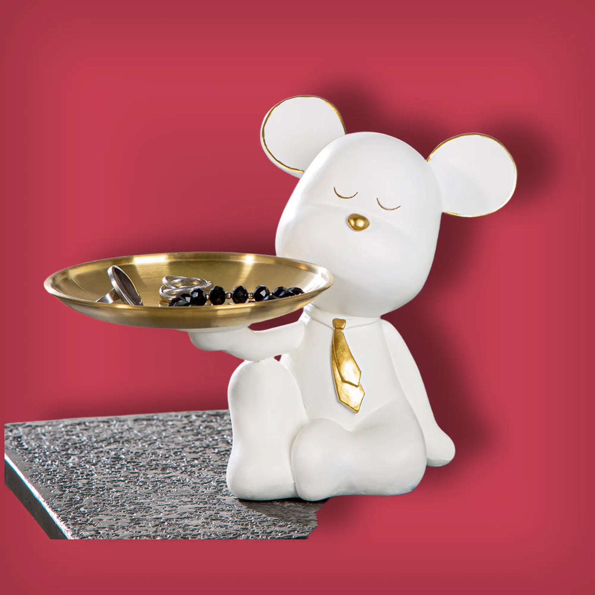 Weiße Kunstharzfigur in Bärenform mit stilvollem Krawattenmotiv. Das 2er-Set eignet sich als dekoratives Highlight für Regale, Tische oder Fensterbänke. Maße: L 17 cm, B 15 cm, H 19 cm.