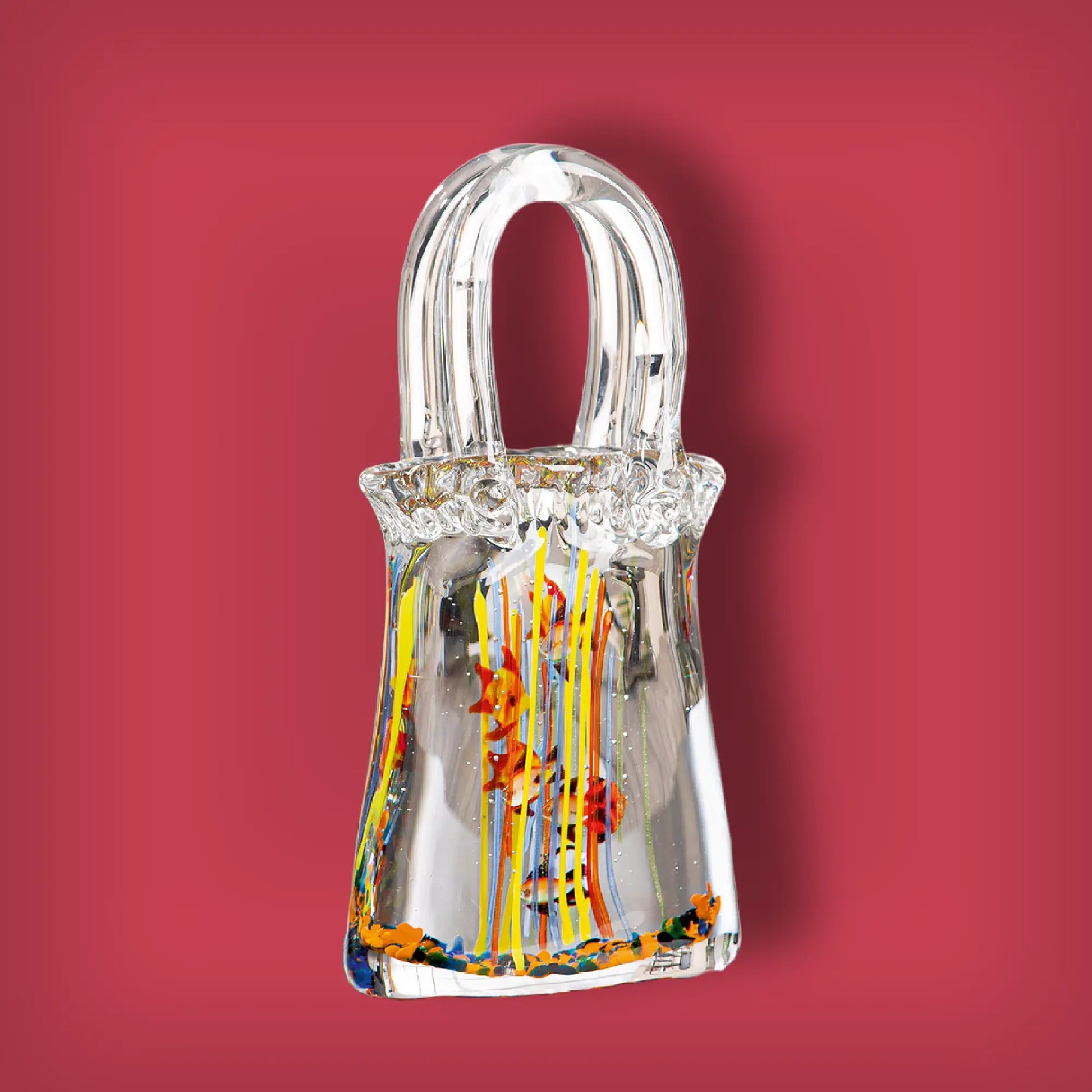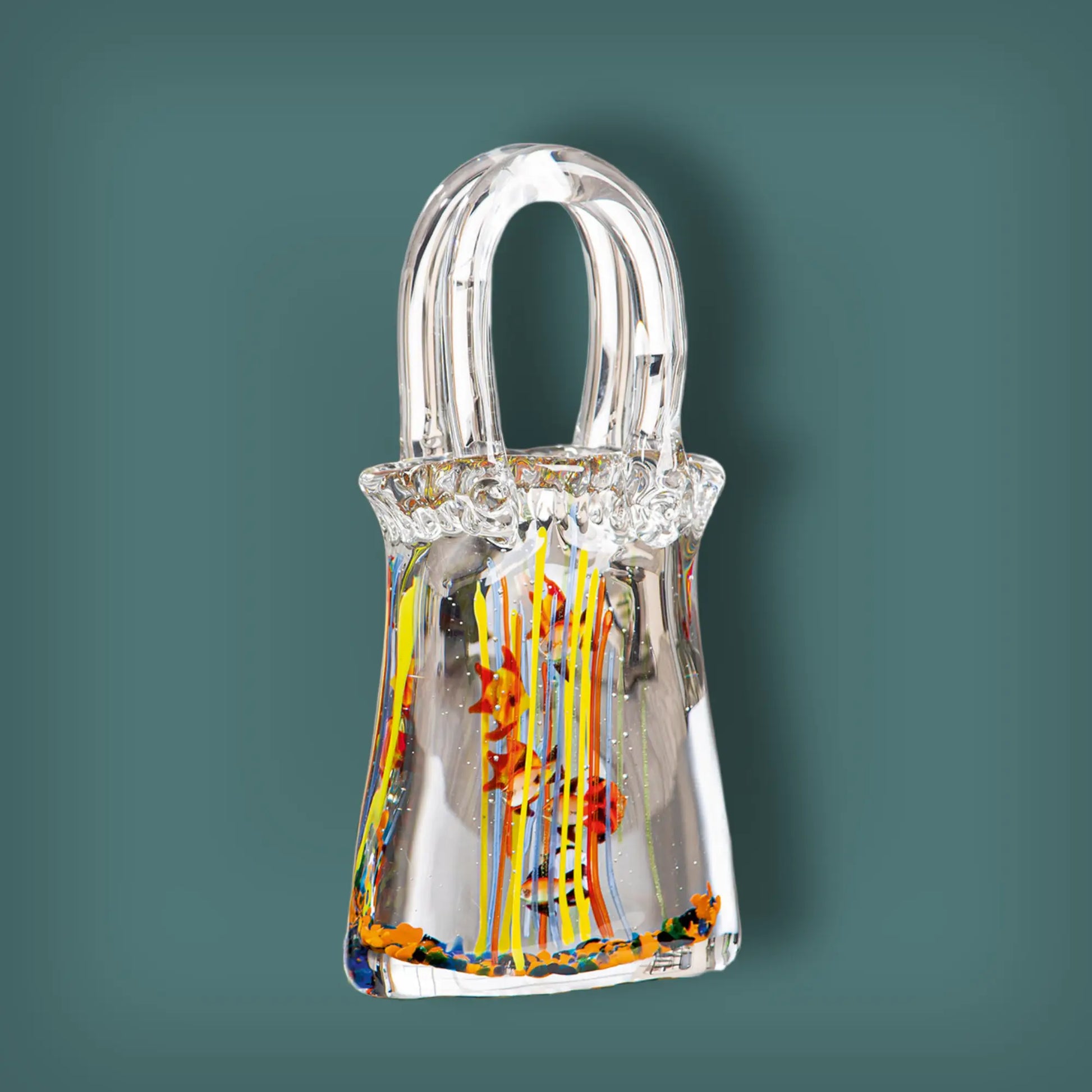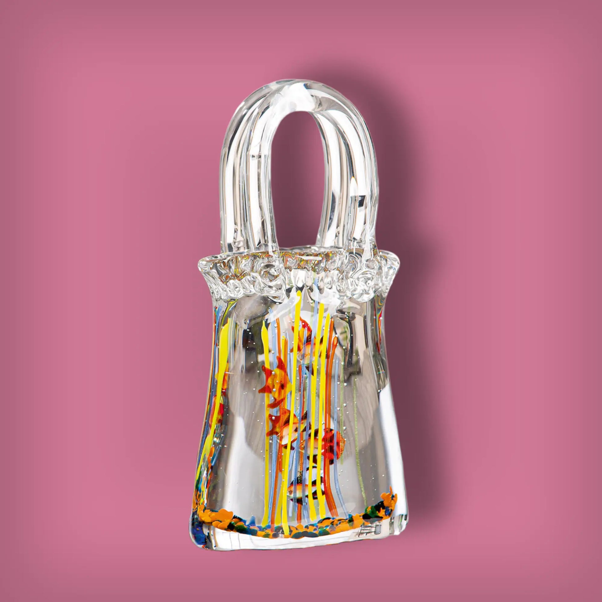 Klares Glas-Dekoobjekt in Form einer Handtasche. Das elegante Stück verleiht jedem Raum einen modernen Akzent und ist perfekt für Vitrinen oder Regale. Maße: L 8 cm, B 14 cm, H 30 cm.