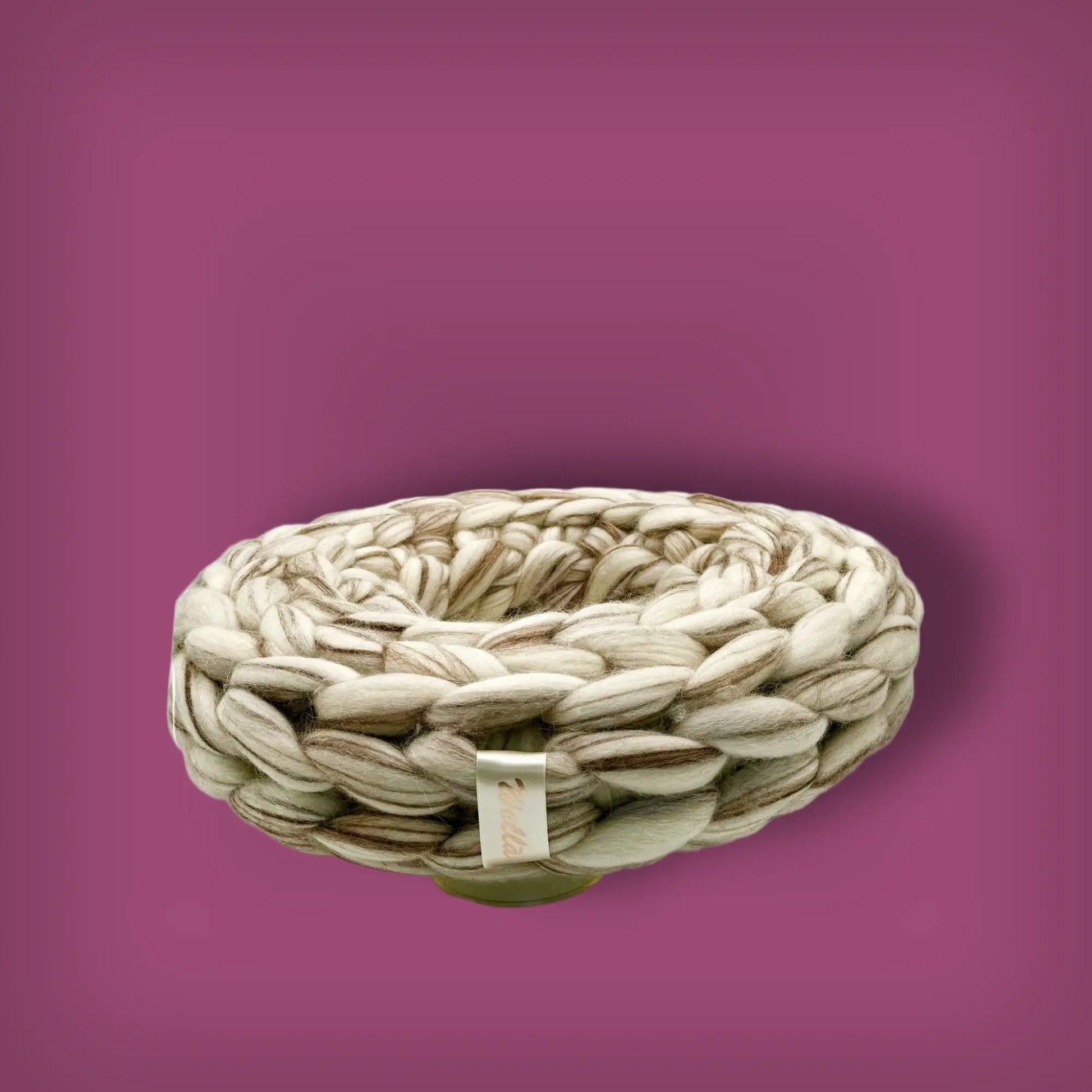 Ein liebevoll handgestrickter Gugelhupf-Zopf aus 100 % Merinowolle – gefertigt in Wiesbaden. Mit seinem eleganten, längs gestrickten Design ist er das ganze Jahr über vielseitig dekorierbar und bringt natürliche Wärme und Stil in jedes Zuhause. Der Zopf hat einen Durchmesser von ca. 40–42 cm, eine Höhe von ca. 15 cm und wiegt 1,5 kg. Erhältlich in verschiedenen harmonischen Farbkombinationen – ein einzigartiges Dekostück mit handgemachter Note.