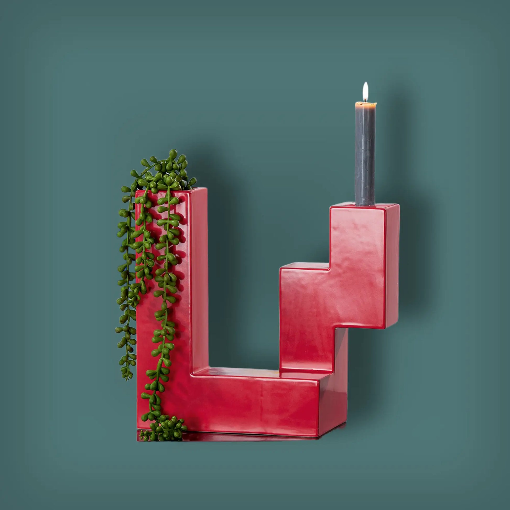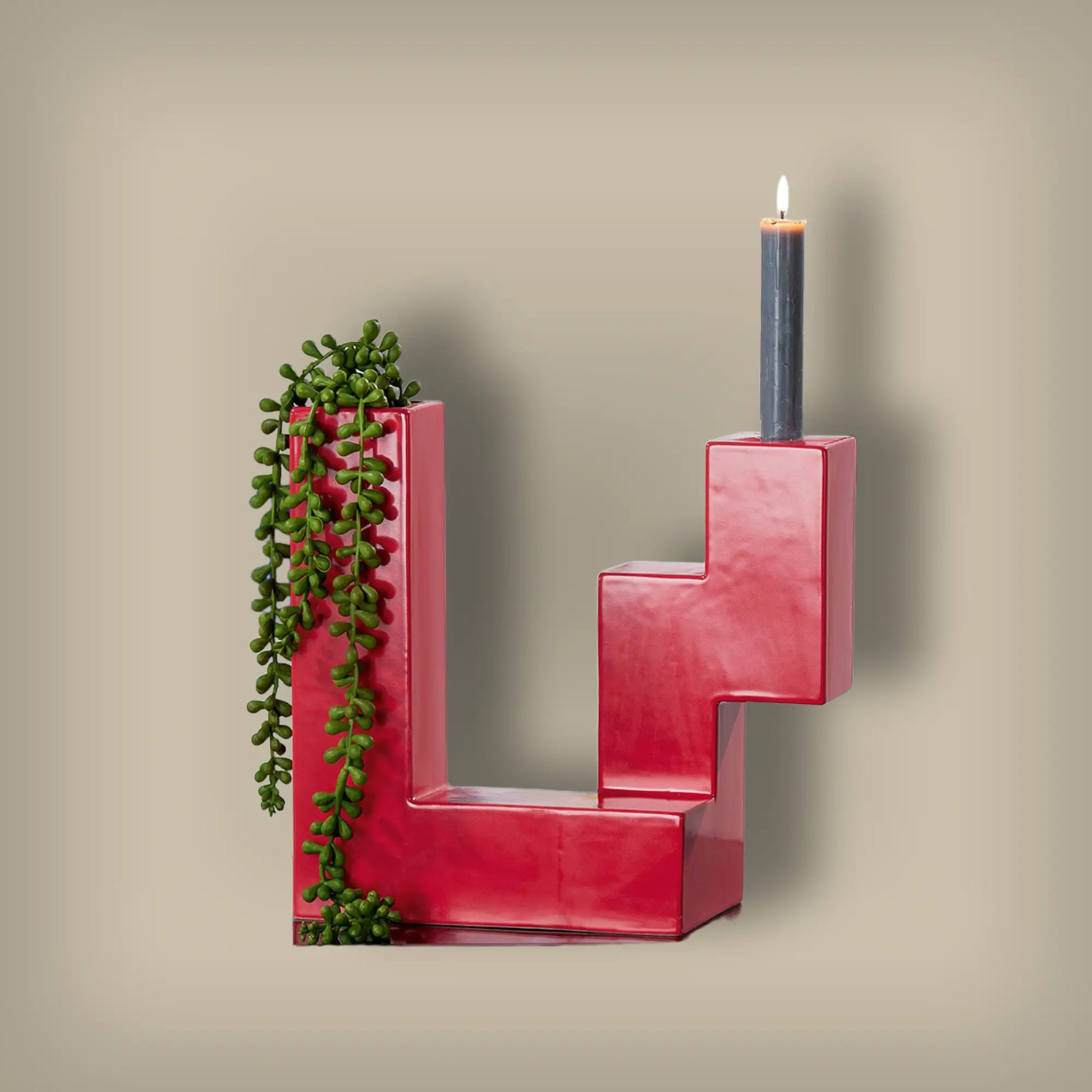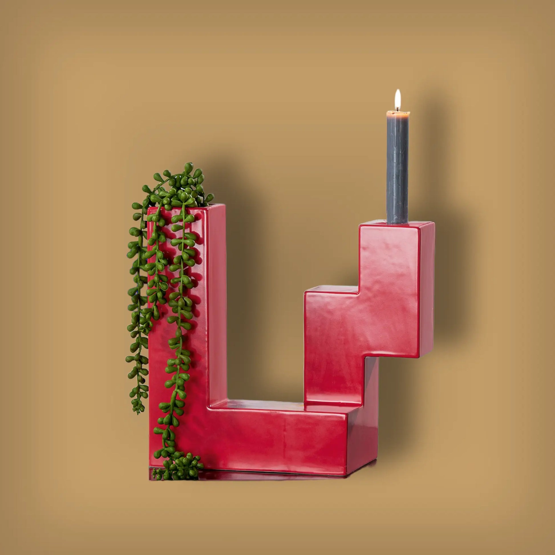 Ein vielseitiges Deko-Highlight: Die Keramikvase Patras in elegantem Rot vereint stilvoll die Funktionen von Vase und Kerzenleuchter. Mit ihrer geschwungenen Form und der glänzenden Oberfläche setzt sie edle Akzente auf Tisch, Sideboard oder Fensterbank. Ideal für frische Blumen oder Stabkerzen – ein echtes Statement-Piece für stilvolle Wohnräume. Maße: L 12,5 cm, B 26 cm, H 25,6 cm.